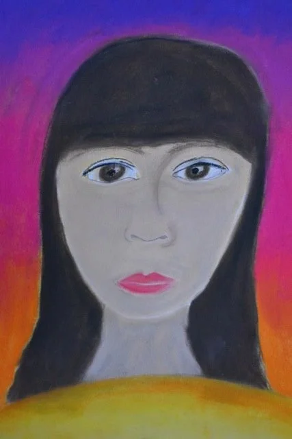Being in foster care is very hard. In my portrait the sun is setting. Last year when I came into foster care I was full of hope. I thought I had finally been rescued and that my life would be better. Now I feel like the bright sunny future I was hoping for is fading away. I still have a little hope left. The sun at the bottom of my portrait shows this. I hold onto hope that I can get through these difficult times and have a successful happy life.